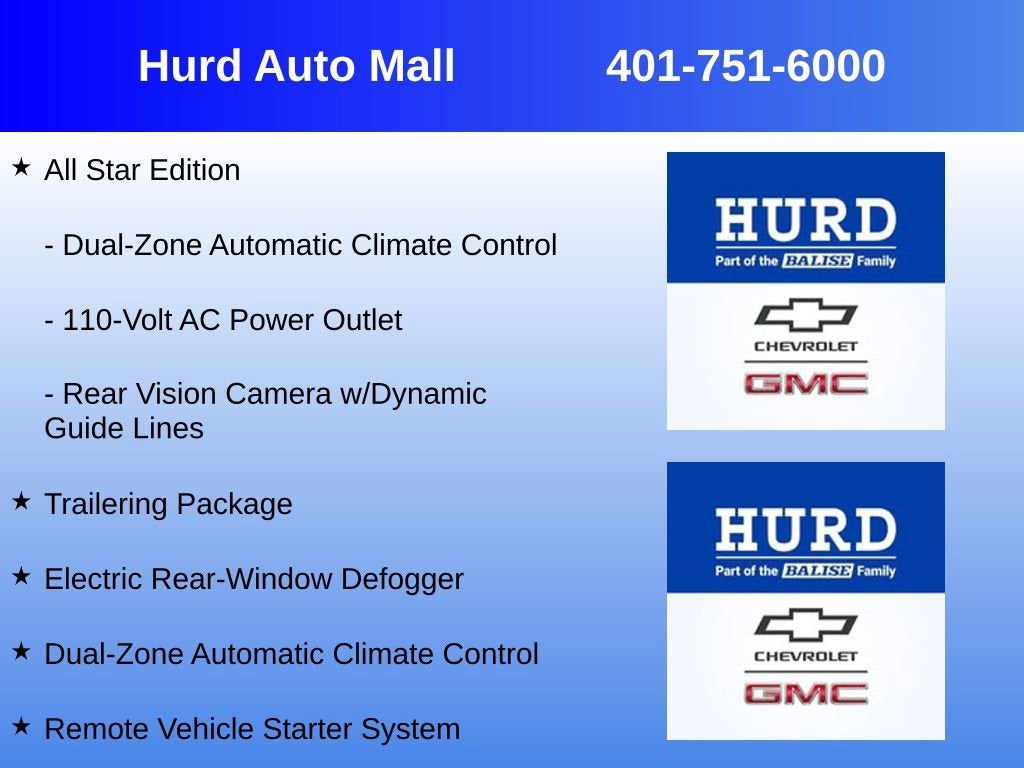6-Speed Automatic Electronic with Overdrive, 4WD, Black Leather, 110-Volt AC Power Outlet, All Star Edition, Dual-Zone Automatic Climate Control, Electric Rear-Window Defogger, LT Plus Package, Power Adjustable Pedals, Power Sliding Rear Window w/Defogger, Rear Vision Camera w/Dynamic Guide Lines, Remote Vehicle Starter System, Trailering Package, Ultrasonic Rear Park Assist, Universal Home Remote. Priced below KBB Fair Purchase Price!