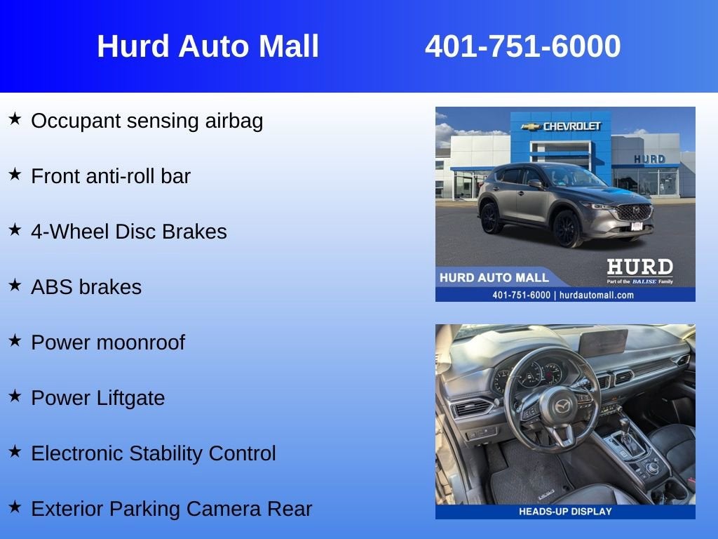 10 Speakers, 4-Wheel Disc Brakes, ABS brakes, AM/FM radio: SiriusXM, AppLink/Apple CarPlay and Android Auto, Automatic temperature control, Delay-off headlights, Driver vanity mirror, Dual front impact airbags, Dual front side impact airbags, Electronic Stability Control, Emergency communication system: MAZDA CONNECT, Exterior Parking Camera Rear, Four wheel independent suspension, Front anti-roll bar, Front Bucket Seats, Front dual zone A/C, Fully automatic headlights, Garage door transmitter: HomeLink, Heads-Up Display, Heated front seats, Heated rear seats, Heated steering wheel, Heated/Ventilated Front Bucket Seats, Infotainment System Voice Command, Leather Seat Trim, Low tire pressure warning, Memory seat, Multifunction Commander Control, Occupant sensing airbag, Pandora, Panic alarm, Power driver seat, Power Liftgate, Power moonroof, Power passenger seat, Power steering, Power windows, Premium audio system: Bose, Radio Broadcast Data System Program Information, Rear window defroster, Remote keyless entry, Speed-sensing steering, Split folding rear seat, Steering wheel mounted audio controls, Traction control, Ventilated front seats, Wheels: 19 x 7J Aluminum Alloy. Priced below KBB Fair Purchase Price!